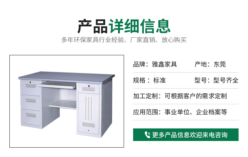 隨著社會的快速發(fā)展,人們生活水平不斷提高,對辦公家具的款式、配套、設(shè)計越來越講究,為了滿足廣大客戶的要求。因而雅鑫辦公家具對自己的產(chǎn)品設(shè)計,選料、生產(chǎn)到包裝等各個程序都運(yùn)用嚴(yán)格的質(zhì)量檢測手段,務(wù)求使產(chǎn)品體現(xiàn)出其細(xì)致、考究、的一面,本公司所有產(chǎn)品廠家直銷,免費上門測量設(shè)計,辦公家具免費送貨安裝,所有產(chǎn)品保用5年,質(zhì)優(yōu)價廉,終身維護(hù)。雅鑫以時尚,實用的為目的,打造經(jīng)久耐用的家具。我們要做只做好的。